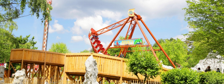 In the "Dragon Bay" themed area, you'll travel to the Far East. In addition to bouncy cushions and trampolines, visitors will find Master Ling's magical garden maze, the Eye of the Dragon and the Dragon's Cave, a roller coaster ride in the dark. The new "Forbidden Kingdoms" area is home to the Cobra Coaster roller coaster. Also not for the faint of heart here is the ride Merlin and the magic Circle, where a double seat is launched some 80 meters into the air.