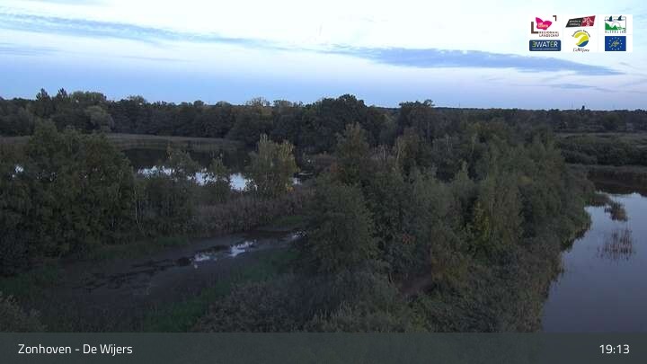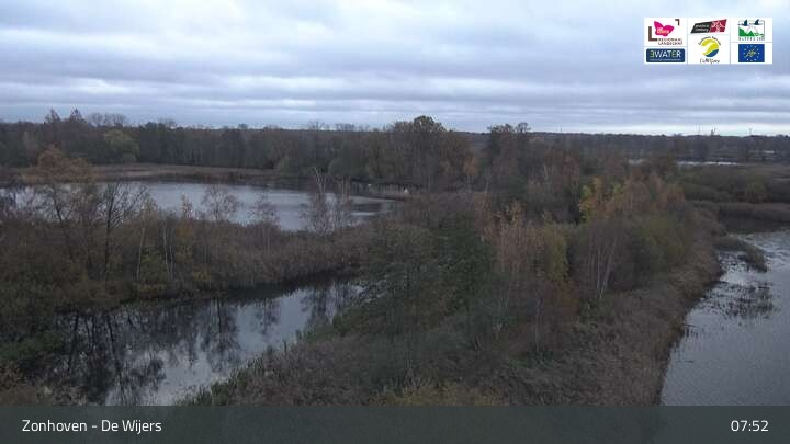 View over the lakes of De Wijers at the Belgian town of Zonhoven.