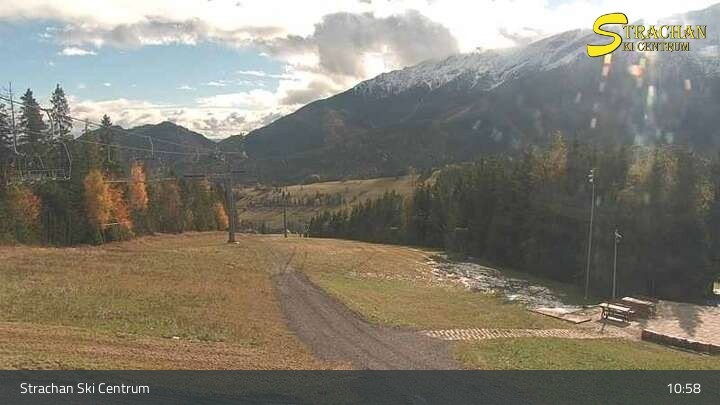 The webcam is located in the ski resort Strachan in Ždiar and shows the base station of the 4-seater chairlift.