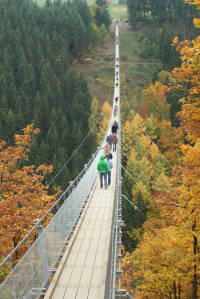 From the parking lot in Mörsdorf, where you'll also find a visitor center, you walk roughly four kilometers through a small forest to reach the bridge, where you're rewarded with a fantastic view over the valley.