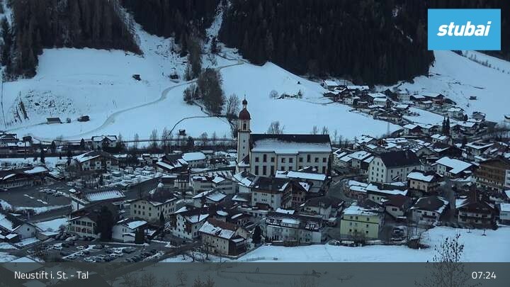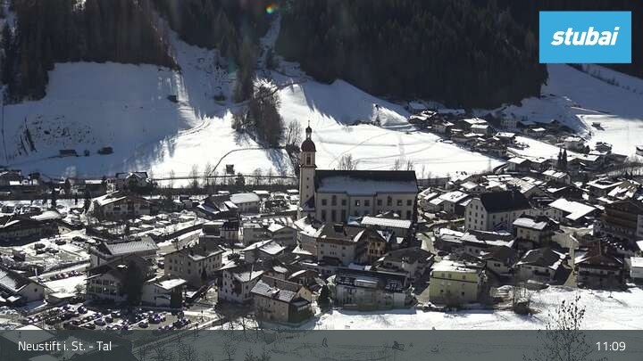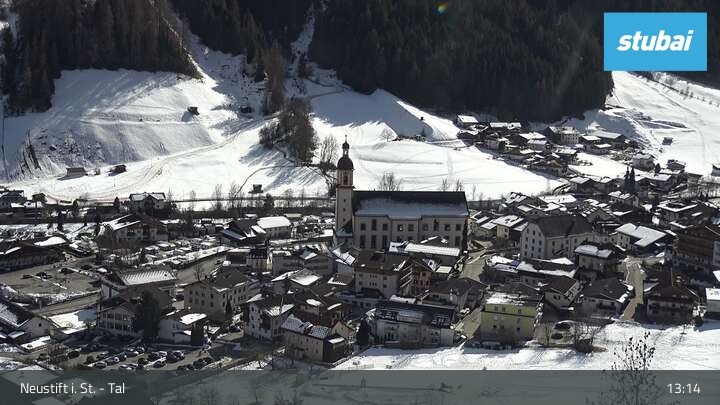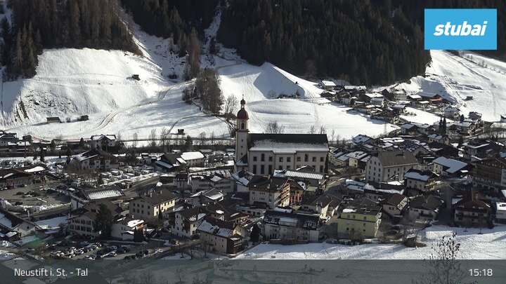 The webcam looks towards the village of Neustift im Stubaital (Stubai valley).
