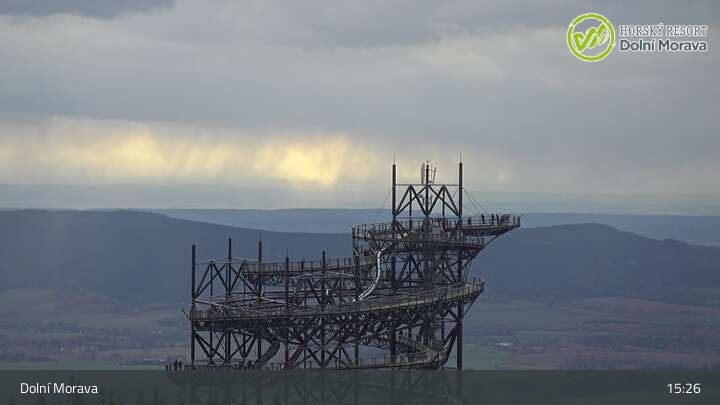 The webcam is located in Dolní Morava. You can see the famous Sky Bridge 721 and the Sky Walk.