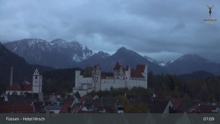 View of High Palace in Füssen. Webcam is located at Hotel Hirsch.