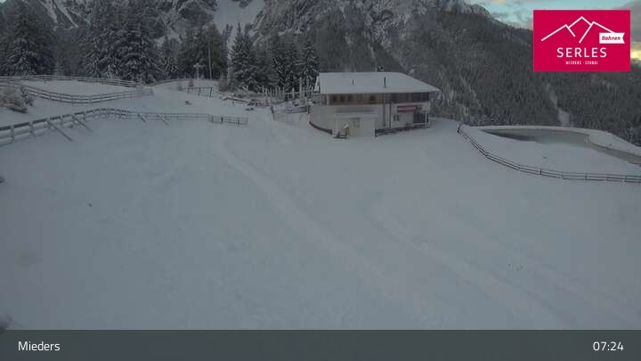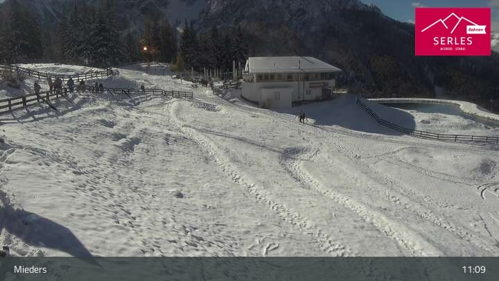The webcam offers the view from the mountain station Koppeneck towards the mountain of Mieders, the Serles. You can also see the mountain restaurant Koppeneck with children's playground and the reservoir.