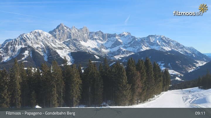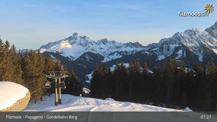 The webcam is located at the top station of the Papageno gondola in Filzmoos.