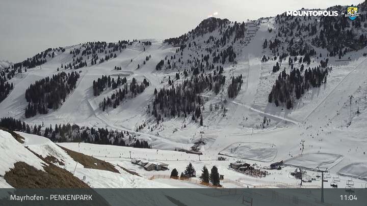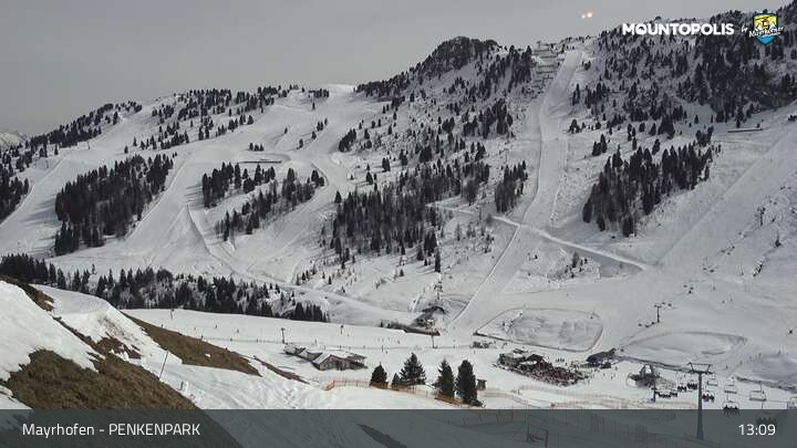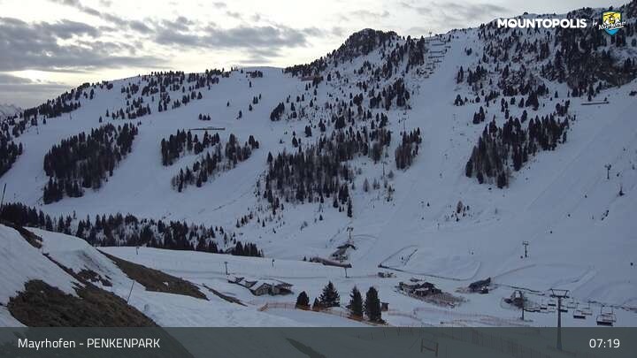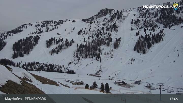 Here you can spot the Vans Penken Park and the sun-jet chairlift at ski resort Mayrhofen.