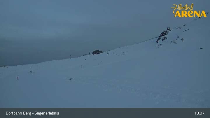 Located at Dorfbahn top station, this webcam shows a panoramic view over the mountain landscape of Zillertal Arena