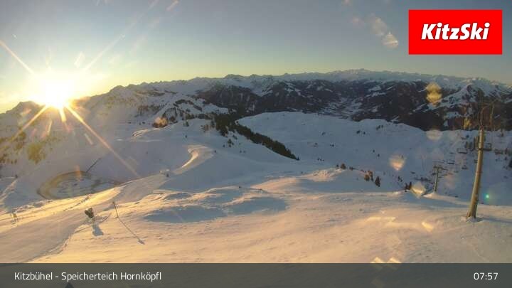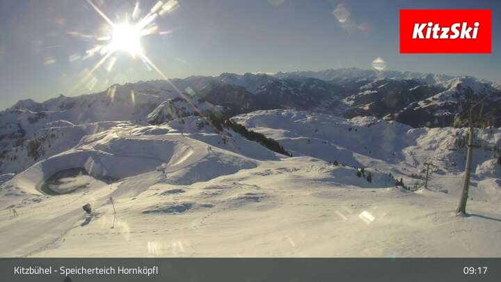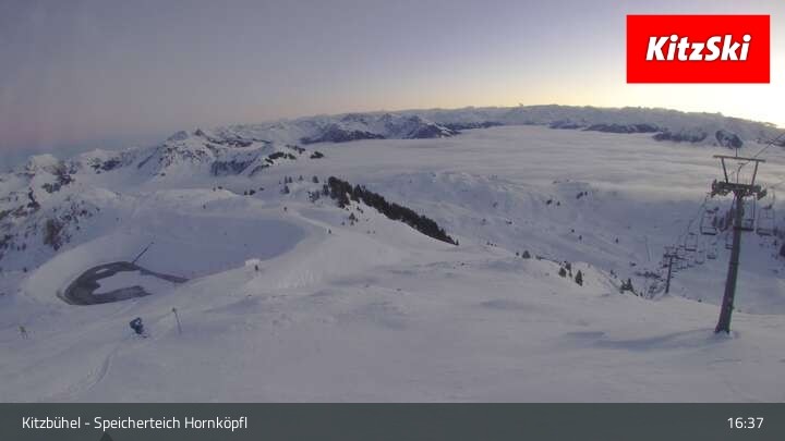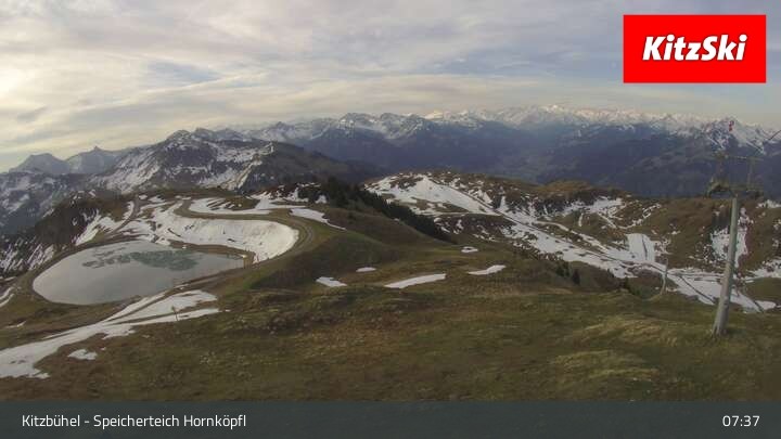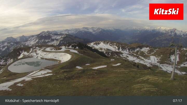 This webcam overlooks Hornköpfl reservoir pond as well as the Alps around Kitzbühel.