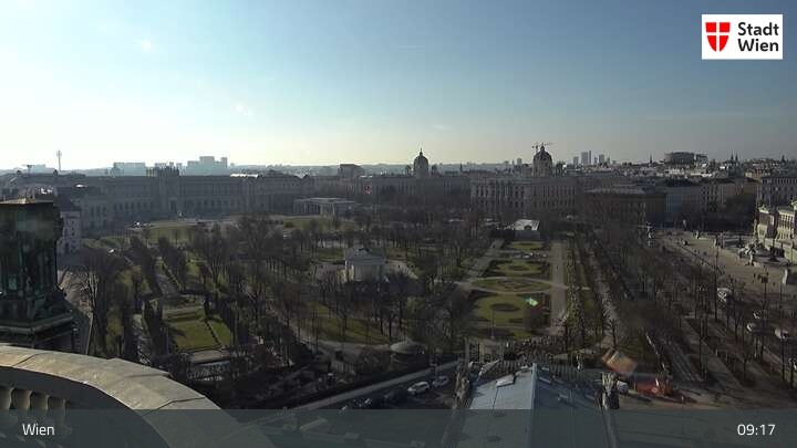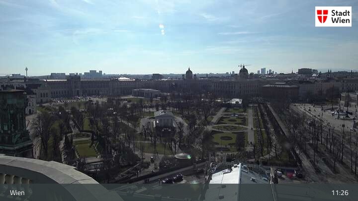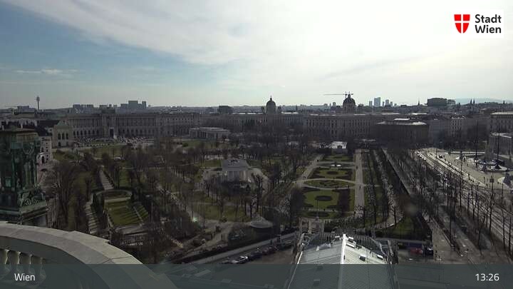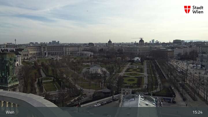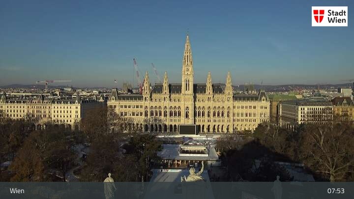 Looking over city centre of Vienna, this webcam shows the Burgtheater as well as the town hall.