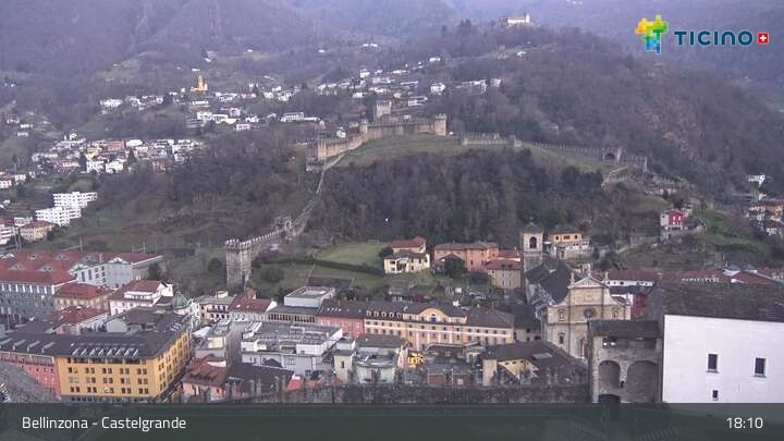 This webcam looks upon Castelgrande castle in Bellinzona, capital of the Swiss canton of Tessin. Since the year 2000, it is an official UNESCO World Heritage Site.