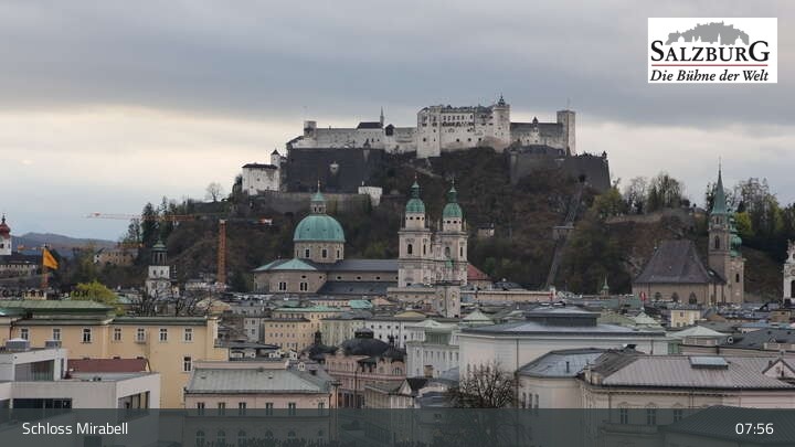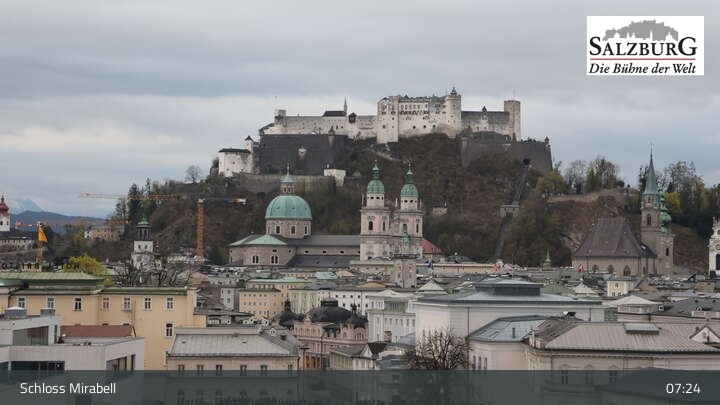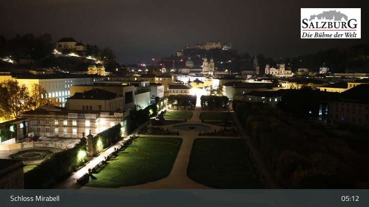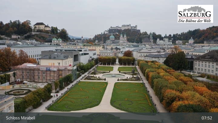 Your view from Mirabellgarten and castle Hohensalzburg in Salzburg, Austria.