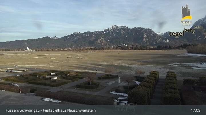 The webcam looks upon the gardens of Ludwigs Festspielhaus, a theatre in Füssen.