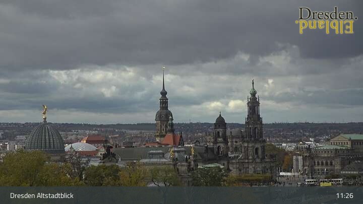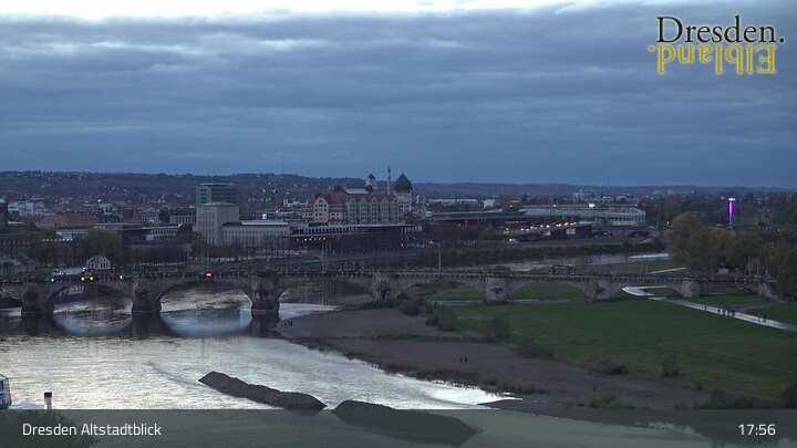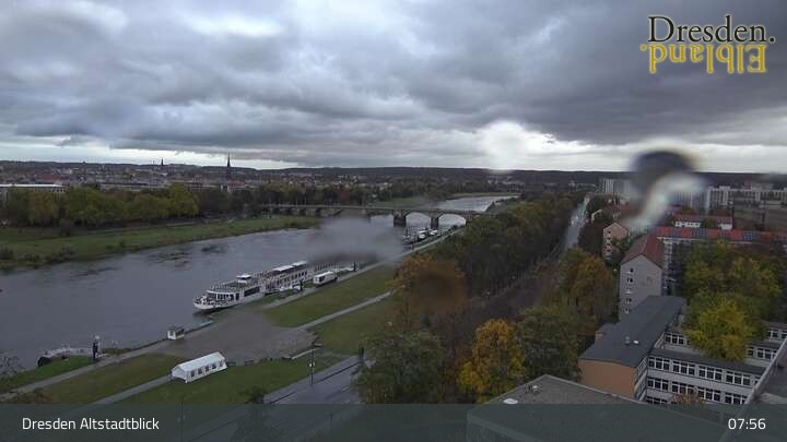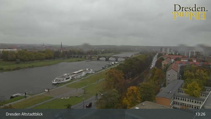 The camera is located at the Hotel am Terrassenufer in Dresden and looks out over the Old Town and the Elbe River.