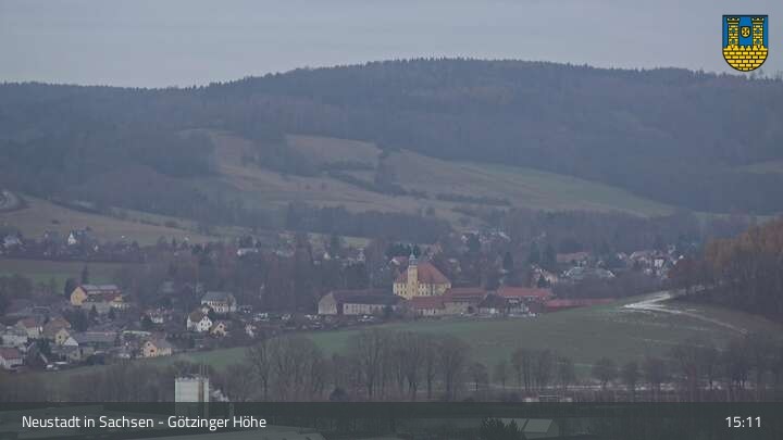 Have a look at Neustadt in Sachsen (Saxony) in the Elbe Sandstone Mountains. The Webcam is located south of the small town at Götzinger Höhe.