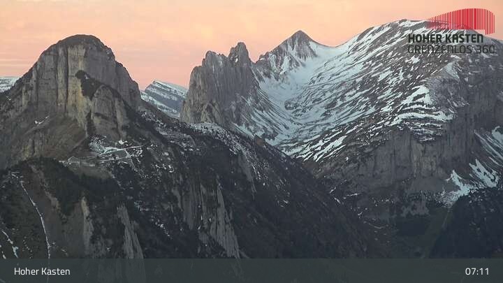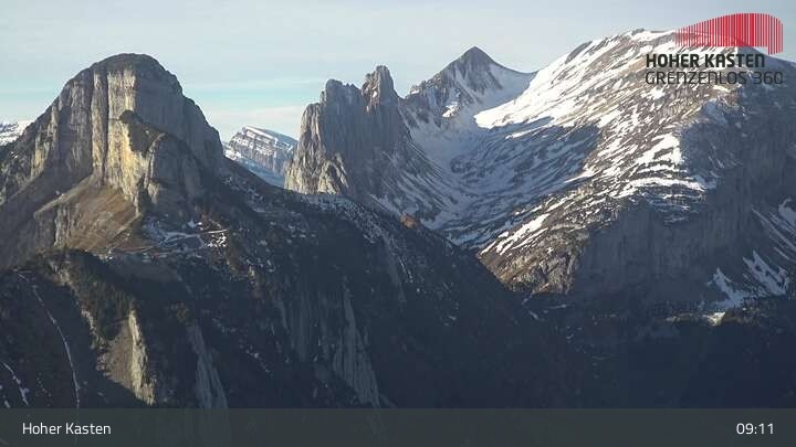 360 degree view from the restaurant on Hoher Kasten over the surrounding Swiss Alps.