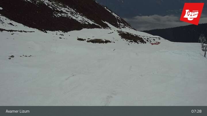 The webcam is located at the top station of the Karleiten chairlift in Axamer Lizum.