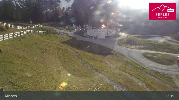 The webcam offers the view from the mountain station Koppeneck towards the mountain of Mieders, the Serles. You can also see the mountain restaurant Koppeneck with children's playground and the reservoir.