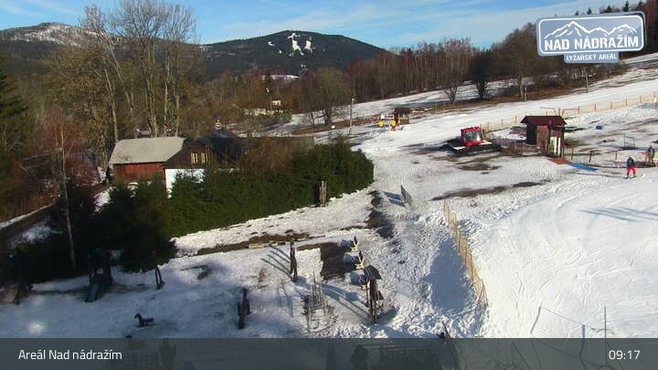 The webcam shows the ski lifts in the area Nad nádražím near Železná Ruda near the German border.