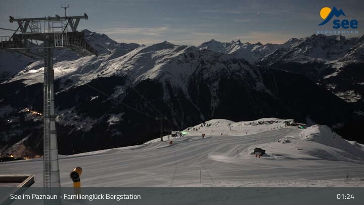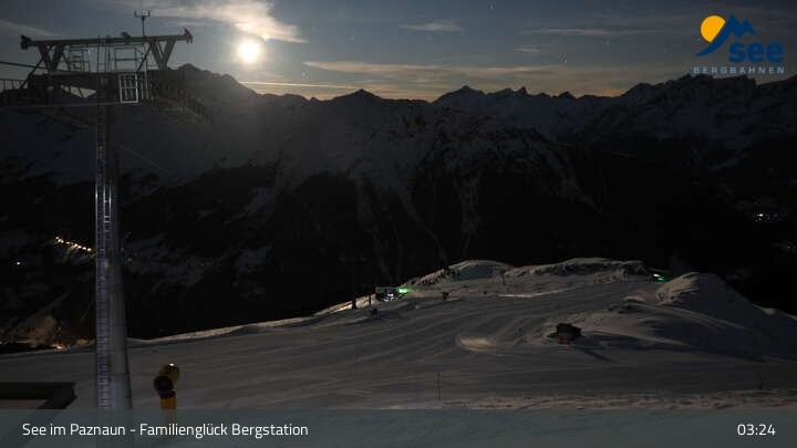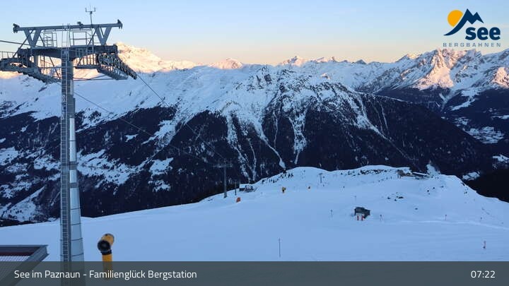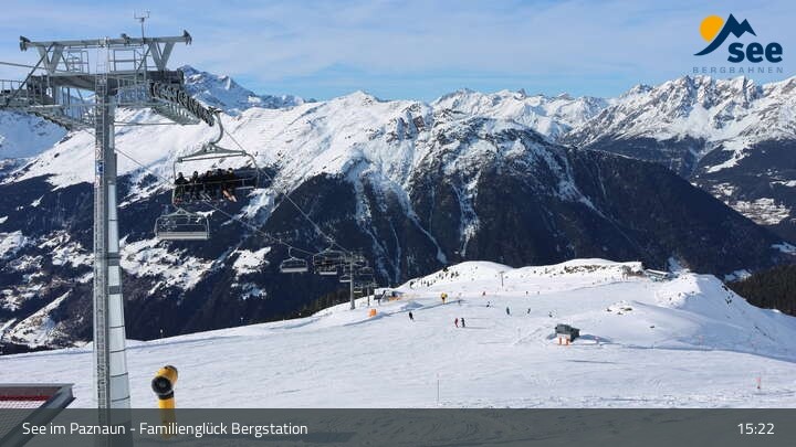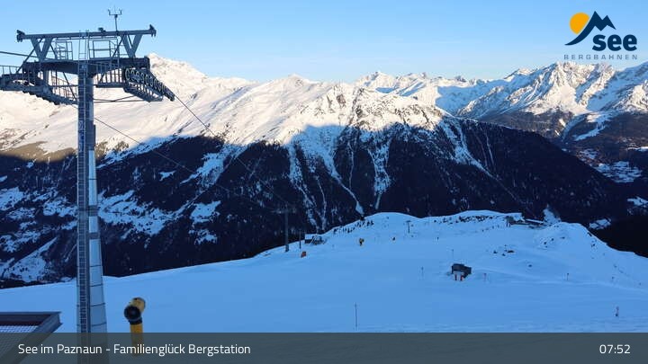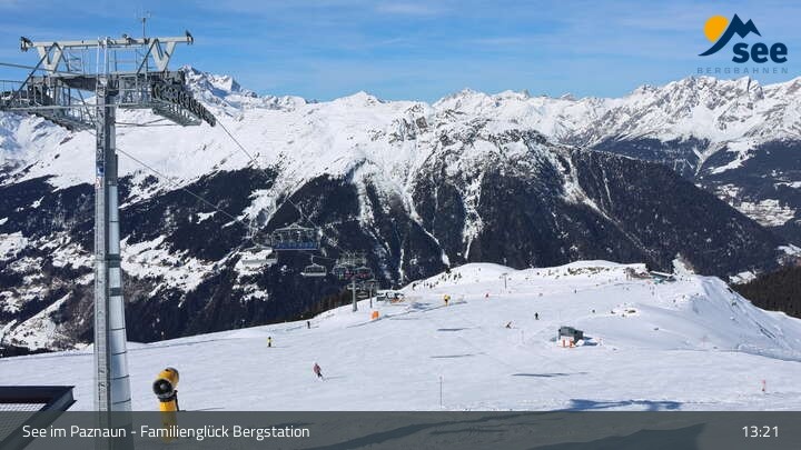 Here you look from the Familienglück top station over the skiing area of "Bergbahnen See"