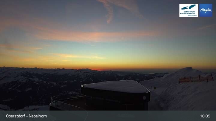 The live cam on Nebelhorn (Oberstdorf) shows the mountain panorama and the slopes below the peak.
