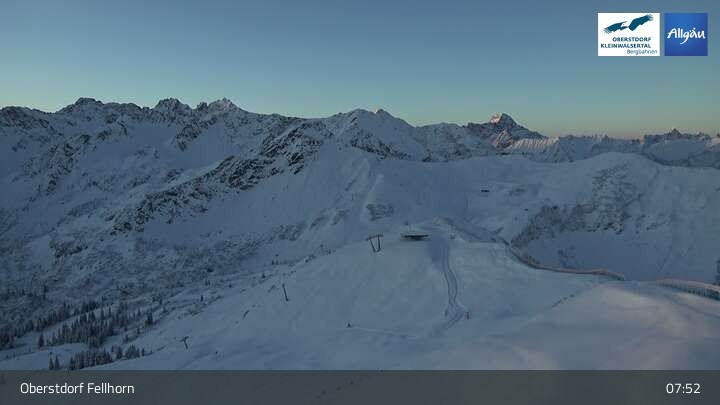The webcam shows the scenery surrounding the top station of Fellhornbahn in Oberstdorf in Bavaria.