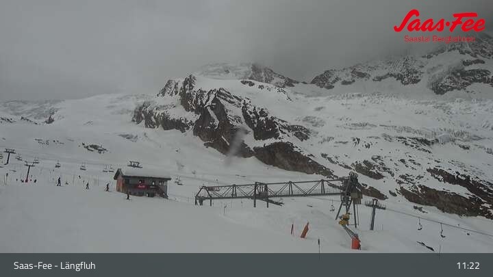 Panoramic view of Fee Glacier from top station Längfluhbahn.