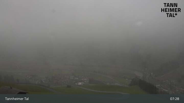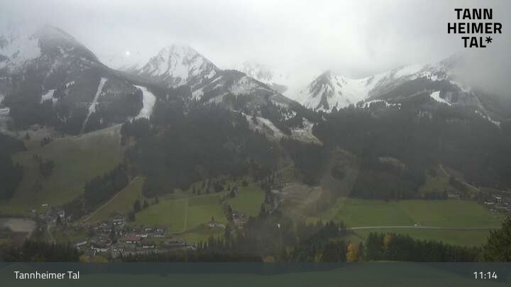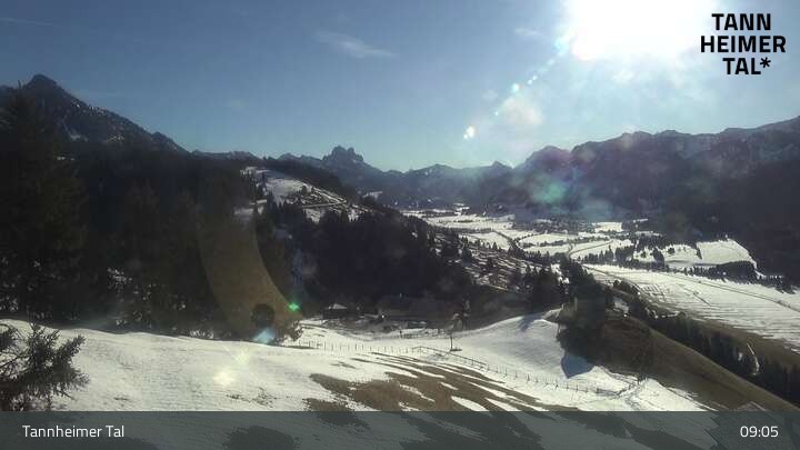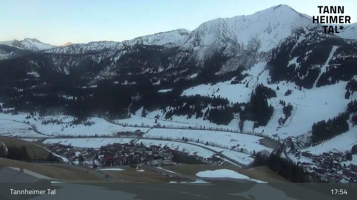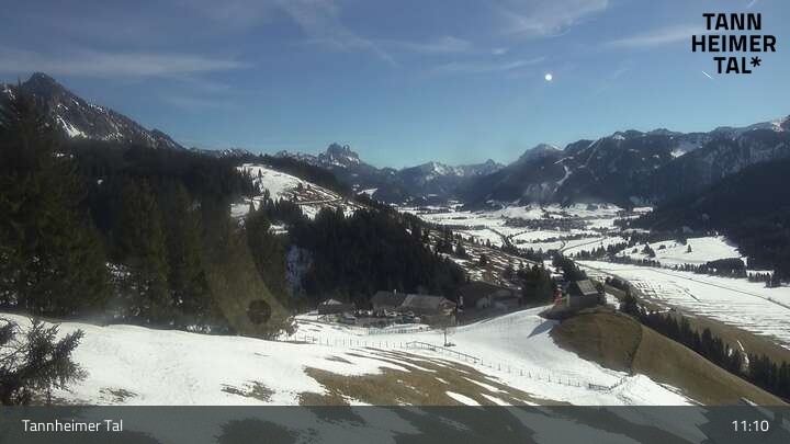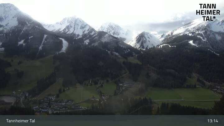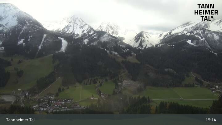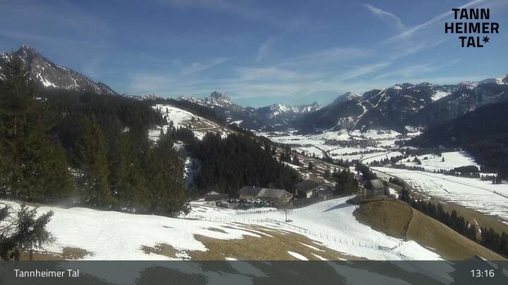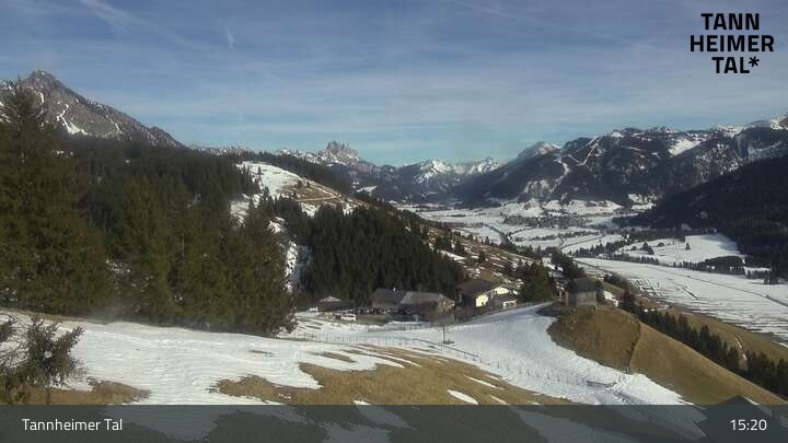 From Upper Halde in Zöblen, this webcam looks upon Tannheim Valley.