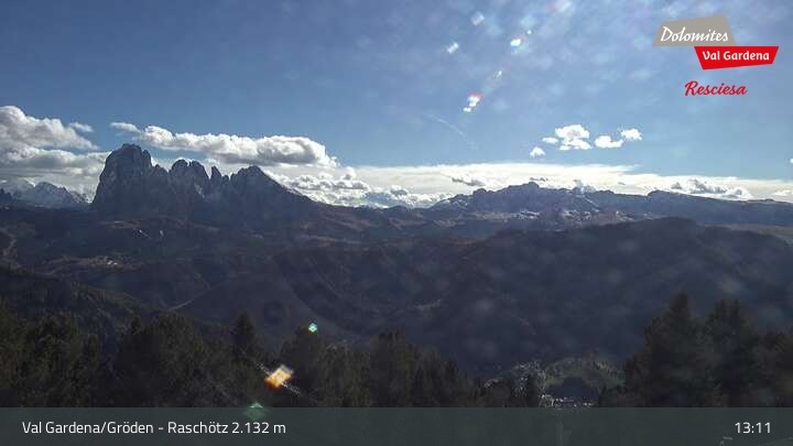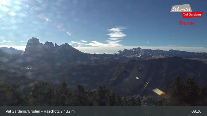 Located at the 2.132 meter (6.995 ft) high Resciesa you can enjoy the view of the surrounding mountains and and the town of Ortisei
