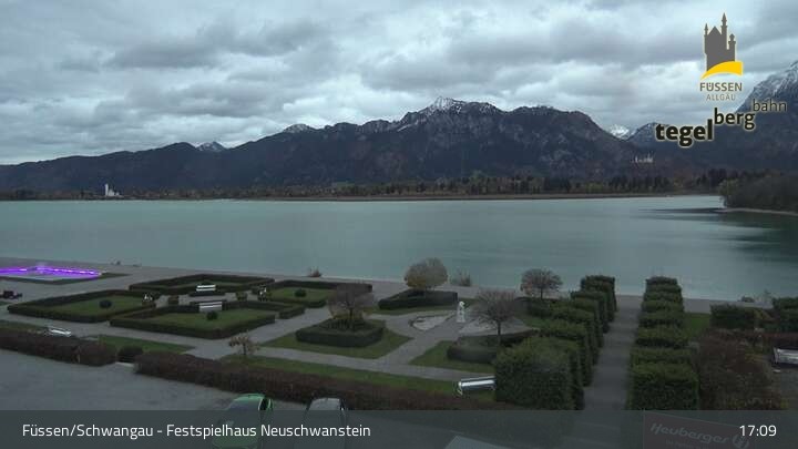 The webcam looks upon the gardens of Ludwigs Festspielhaus, a theatre in Füssen.