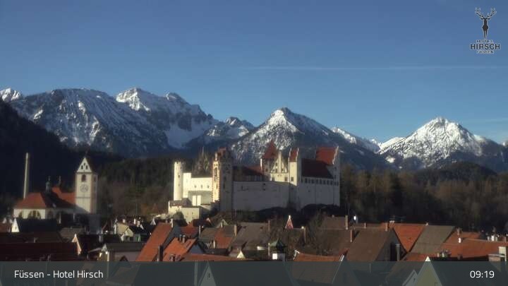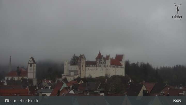 View of High Palace in Füssen. Webcam is located at Hotel Hirsch.