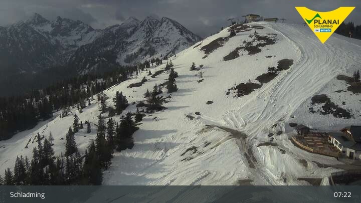 Located at the top station of the Planai gondola the webcam shows Mt. Planai in Schladming.