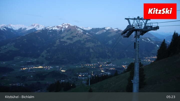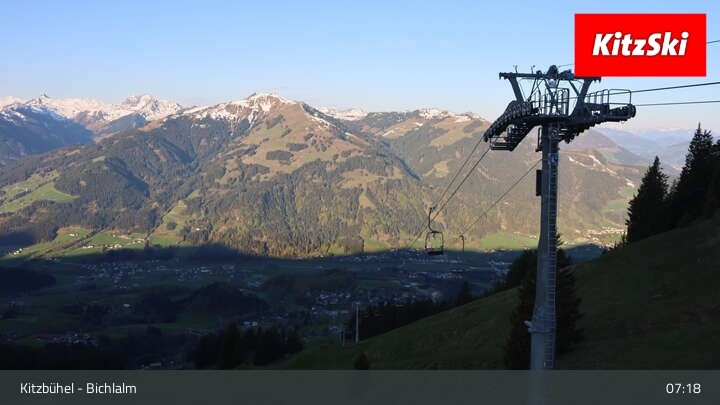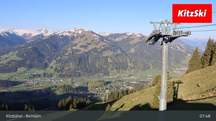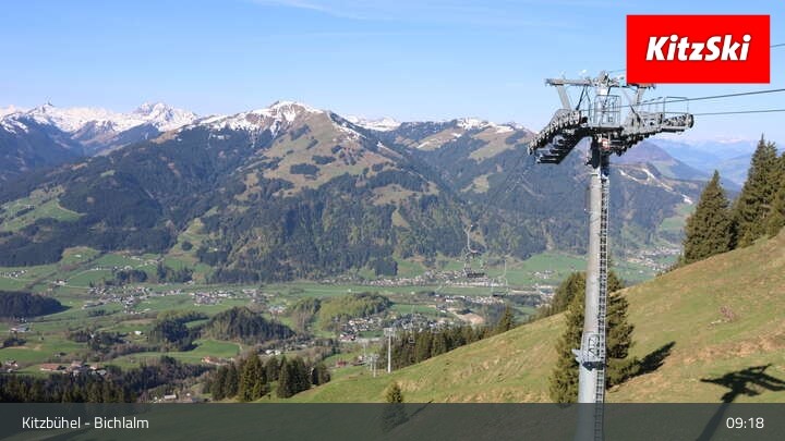 From Bichlalm lift's top station, this webcam provides a great view over the Alpine landscape around Kitzbühel.