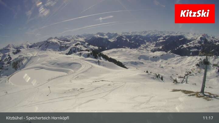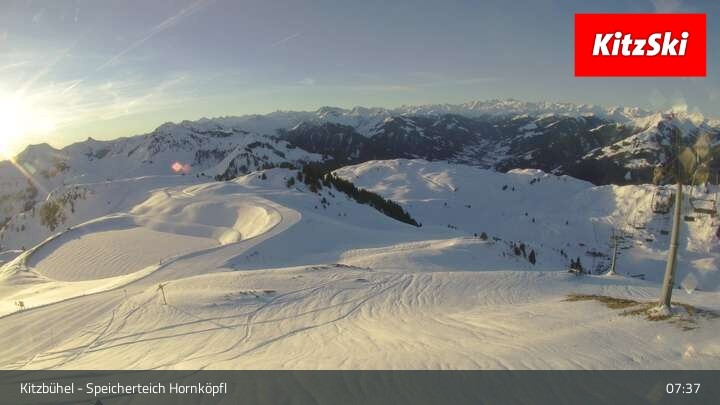 This webcam overlooks Hornköpfl reservoir pond as well as the Alps around Kitzbühel.