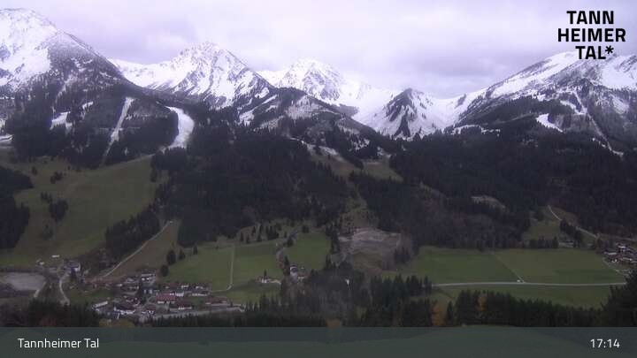 From Upper Halde in Zöblen, this webcam looks upon Tannheim Valley.