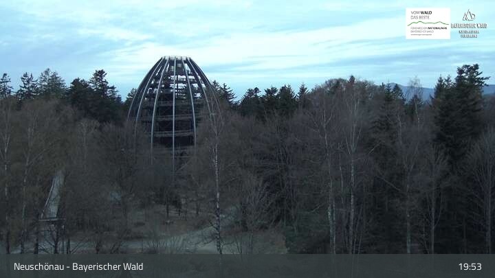 The camera is located in Neuschönau on the roof of the Hans-Eisemann-Haus visitor center in the Lusen National Park Center in the Bavarian Forest. You can also see the tree tower of the tree top walk, which is over 40 meters high.
