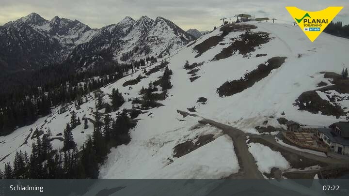 Located at the top station of the Planai gondola the webcam shows Mt. Planai in Schladming.