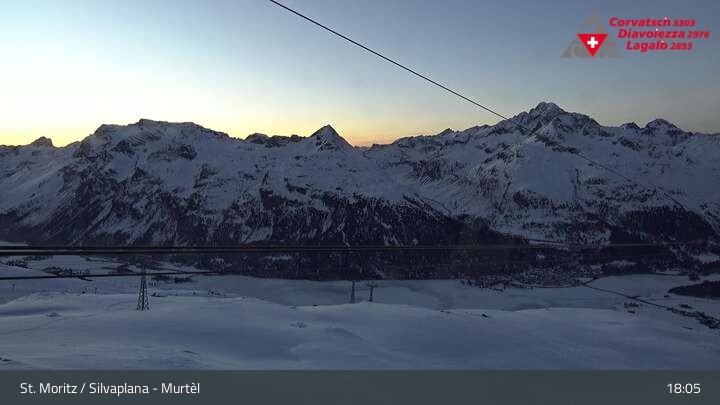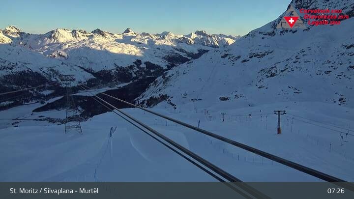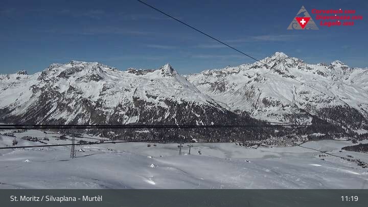 View over the Upper Engadine lakes in Graubünden from the Murtel station.