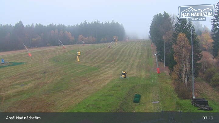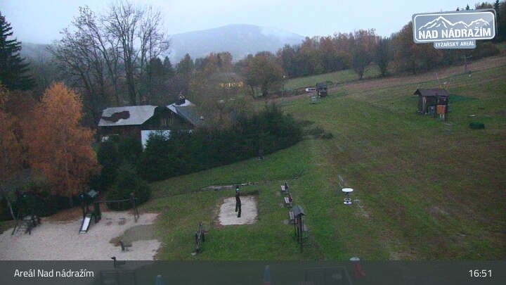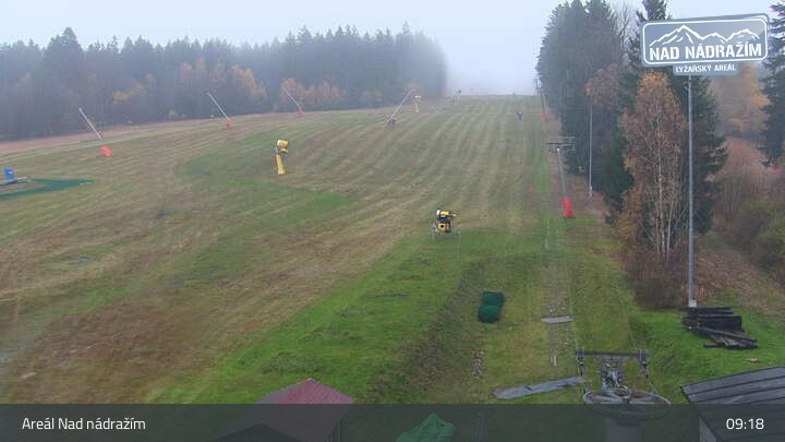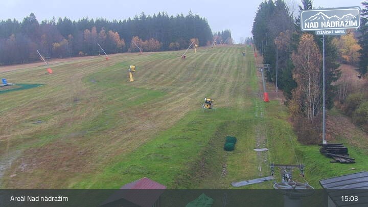 The webcam shows the ski lifts in the area Nad nádražím near Železná Ruda near the German border.