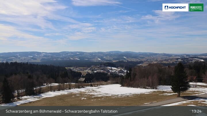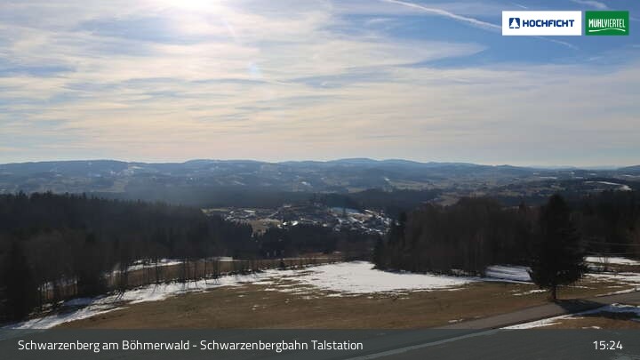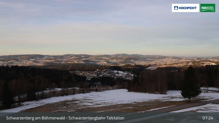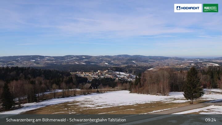 View of Schwarzenberg village in Upper Austria. Der Webcam is located at the base station of the chair lift.