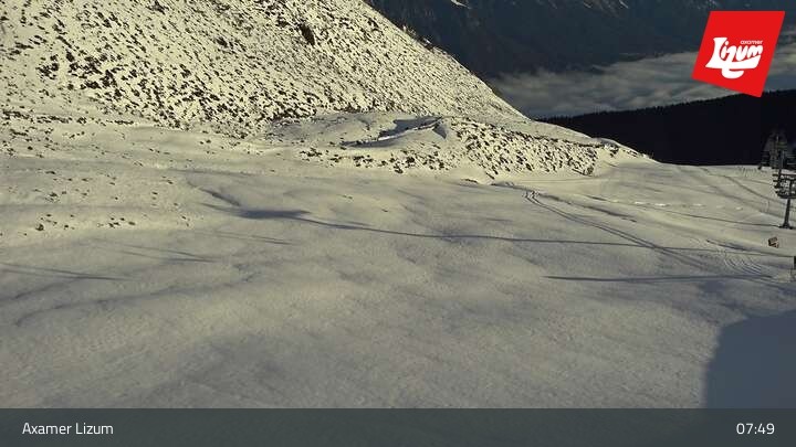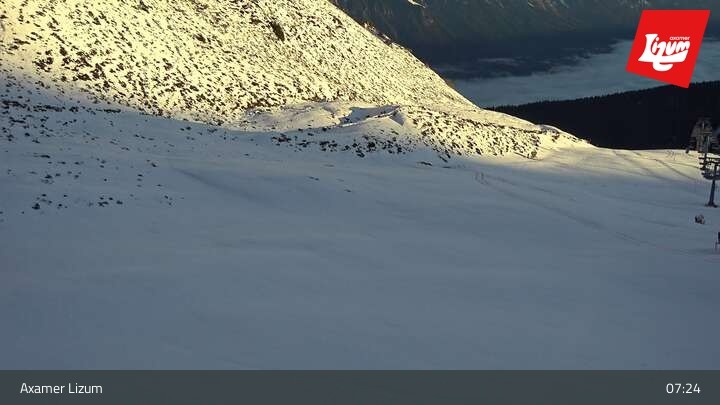 The webcam is located at the top station of the Karleiten chairlift in Axamer Lizum.