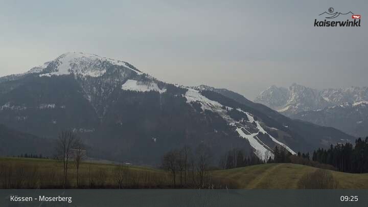 From Moserberg mountain in Kössen, this webcam overlooks the surrounding Alpine landscape.