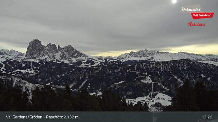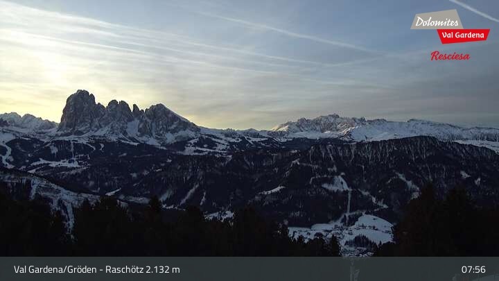 Located at the 2.132 meter (6.995 ft) high Resciesa you can enjoy the view of the surrounding mountains and and the town of Ortisei