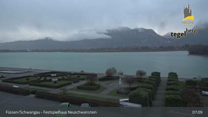 The webcam looks upon the gardens of Ludwigs Festspielhaus, a theatre in Füssen.