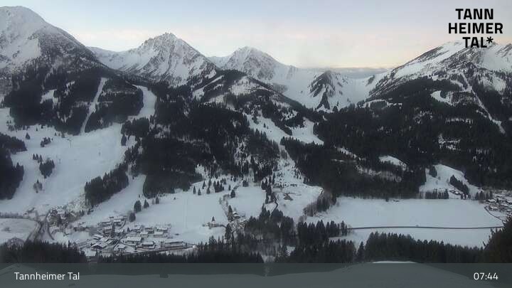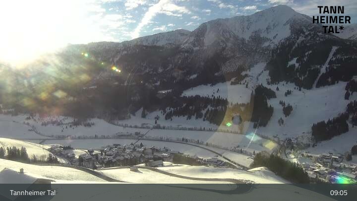 From Upper Halde in Zöblen, this webcam looks upon Tannheim Valley.