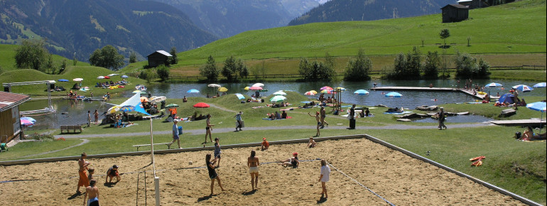 The bathing lake has a recreation area with sunbathing areas, barbecue areas, a slack line and a beach volleyball court. For the little guests there is a sandpit and a dog pool for the four-legged friends. In the Seecafé you can rent umbrellas, deckchairs, towels and volleyballs. Events such as the annual Val Lumnezia cinema festival often take place at the complex. Also private celebrations can be held here.