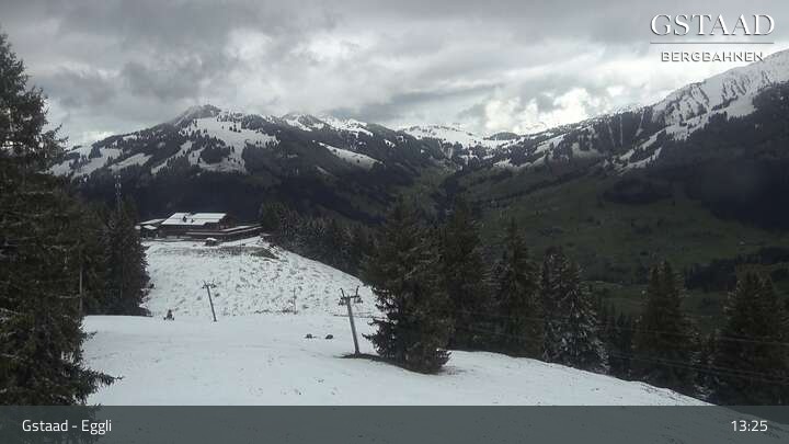 The webcam near Gstaad shows the mountain restaurant Eggli. It is situated at the top station of the Saanen-Eggli chairlift.