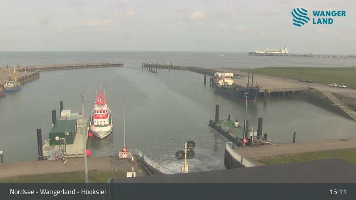 The webcam looks upon the outer port of Hooksiel near Wilhelmshaven.