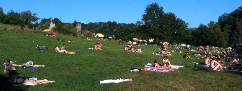 The shade at this reservoir is mainly along the hiking or cycling path, as the trees at the edge of the bank provide the necessary sun protection. The shade then wanders up the hill with the sunbathing lawn during the day.