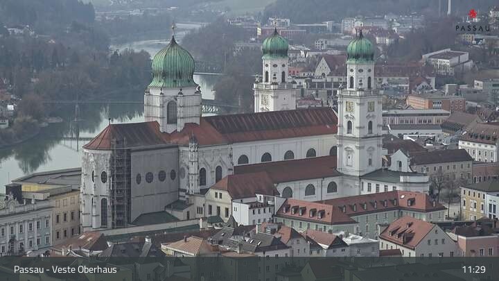 This webcam shows the view from Veste Oberhaus over the city centre of Passau. You can also see the river Danube.