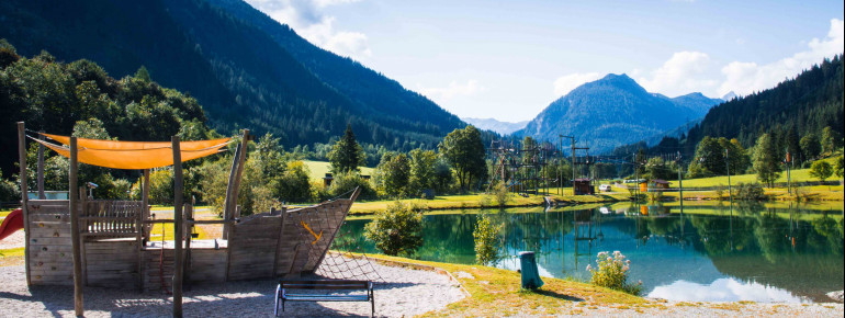 Around the swimming lake in Flachauwinkl there are many things to do which provide plenty of fun and action. You can make with your friends a volleyball match or play table tennis. The kids, who can not get enough of the water, enjoy the adventure playground with pirate ship and a petting zoo. Here you can ride also ponies. A real highlight is the new high ropes course with a flying fox across the lake. About 20 obstacles at a height between nine and twelve meters is to be overcome.